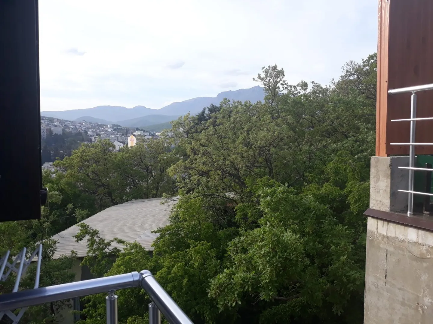 Комната с балконом и с/у, вид с окна на лес, горы и парковку. Дом находится в лесу на возвышенности, где раскрывается прекрасный вид на горы, город и море — всё как на ладони. Воздух просто потрясающий, смешиваются три воздуха: морской, лесной и горный. За счет того, что дом находится на возвышенности в лесу, знойным летом всегда прохладно. Из крана течет чистая родниковая вода, воду покупать для чайника и приготовления еды не нужно. В номерах имеется всё самое необходимое: кондиционер, ТВ, Wi-Fi, фен, чайник, холодильник, балкон, стол, стулья, шкаф, с/у, душевая кабина, полотенца на каждого гостя + полотенца для пляжа. Уборка производится по требованию гостя и смена белья раз в неделю. Во дворе имеется мангал, общая кухня-столовая, холодильник, стиральная машина (за доп. плату), утюг с гладильной доской. При заезде на машине есть участок извилистой грунтовой лесной дороги вверх около 150 метров. До моря пешком 10–15 минут. При возвращении с моря имеется подъем по бетонной дороге около 50 метров.