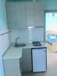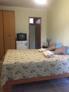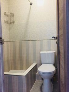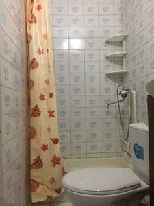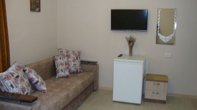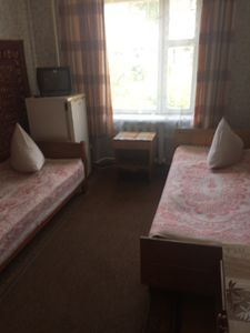 Три кровати,телевизор и холодильник,душ и санузел рядом(за дверью),всё отлично👍.