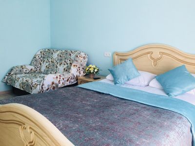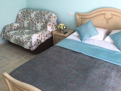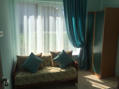 расположение великолепное, рядом рынок, автостанция, через две остановки в шаговой доступности набережная, хозяин очень доброжелательный, двор очень зеленый красивый