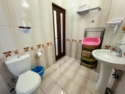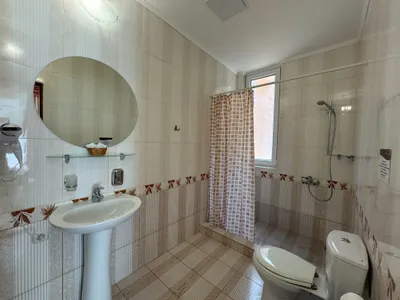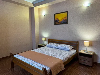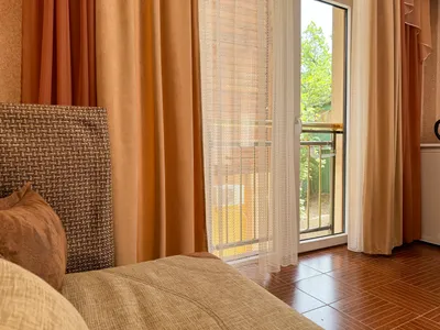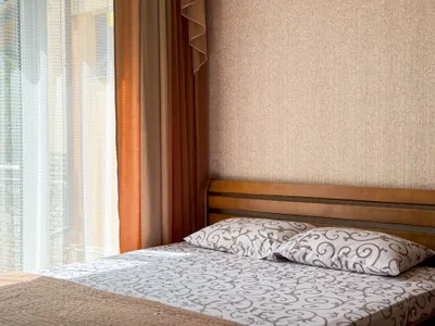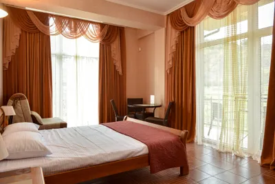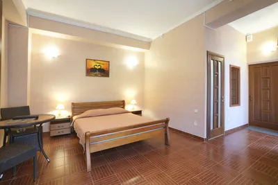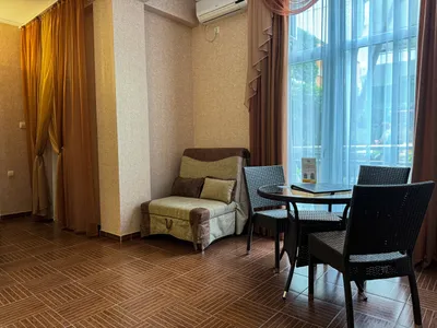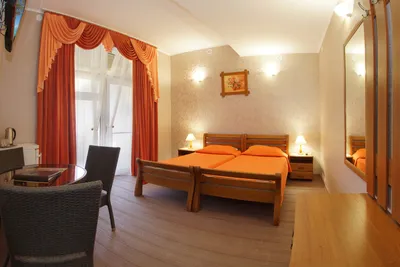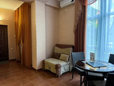 Жили семьей (мы и двое детей). Специально выбирали двухкомнатный номер, чтобы спать отдельно. Это очень удобно. Отличный номер с балконом с потрясающим видом на виноградники, гору и море. Рядом нет дороги — тишина, это редкость для Алушты. Номер большой, с огромной ванной комнатой. Очень чисто. Есть всё необходимое. Кухня и терраса для приема пищи отдельная внизу гостиницы. Единственное пожелание к руководству — организовать для приема пищи отдельную комнату для персонала.