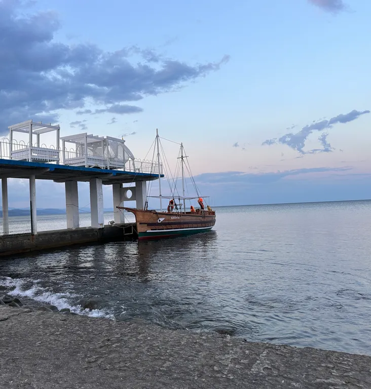 Очень добрые и душевные хозяева! Хорошая терраса с потрясающим видом на море, особенно закат и рассвет 🌅 Путь к морю через красивый санаторий.